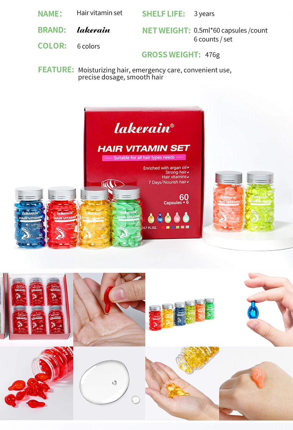 6pcs Moroccan Vitamin Oil Hair Care Essence Damaged Nutrition Repair Hair Splitting Improvement Treatment Products 60 Capsules
