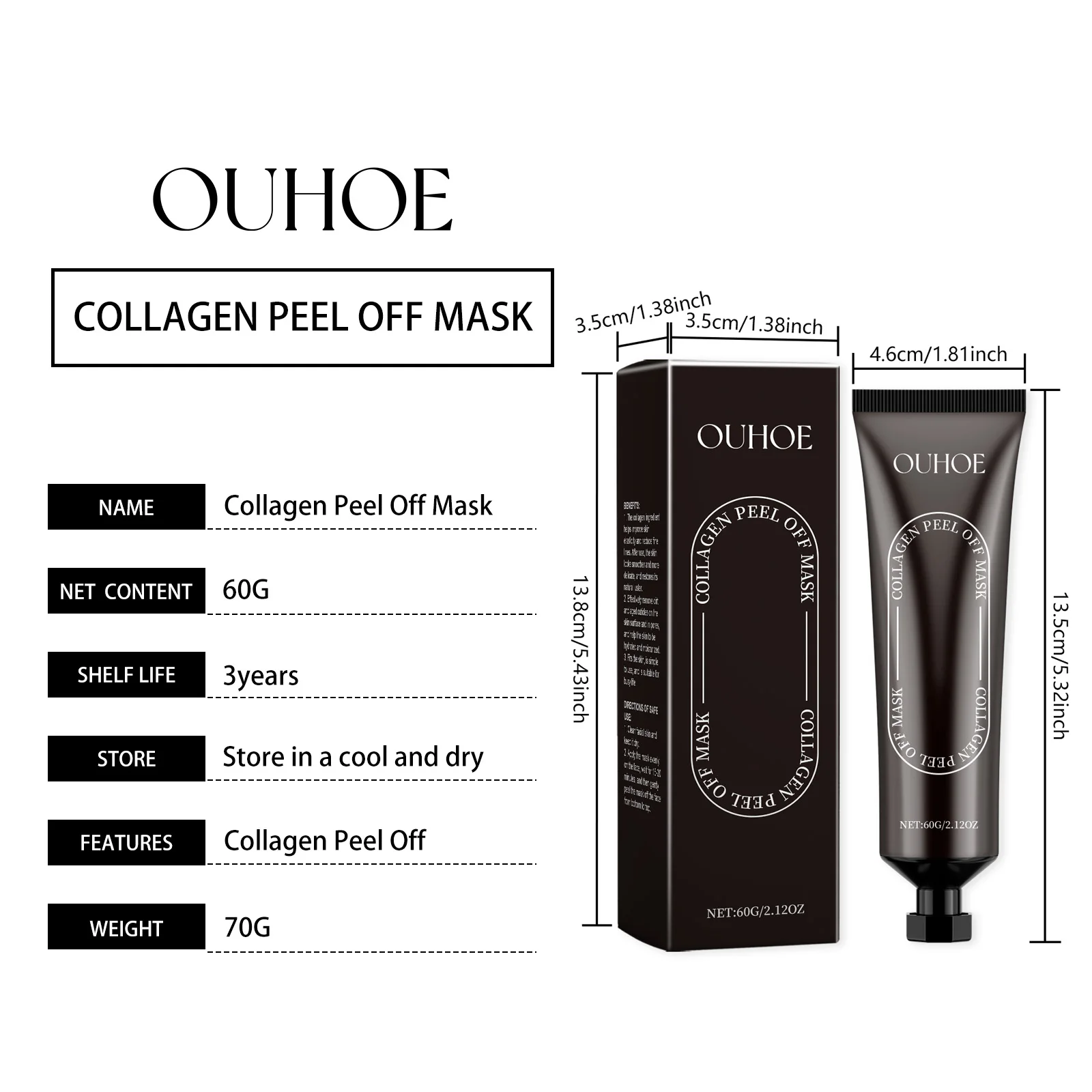 OUHOE Collagen Peel Off Mask 60g Collagen Peel and Tear Mask Gently Cleanses Pores Facial Oil Control Hydrating Mask
