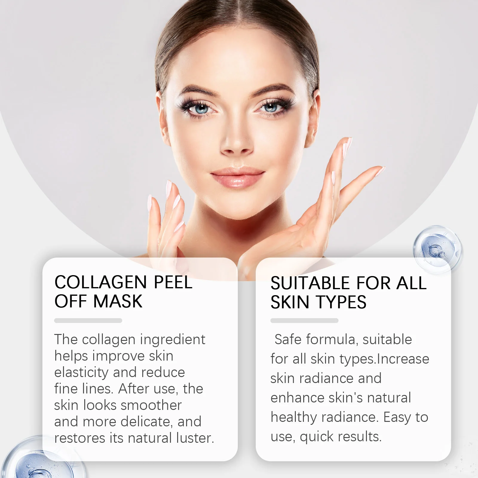 1. The collagen ingredient helps improve skin elasticity and reduce fine lines. After use, the skin looks smoother and more delicate, and restores its natural luster.