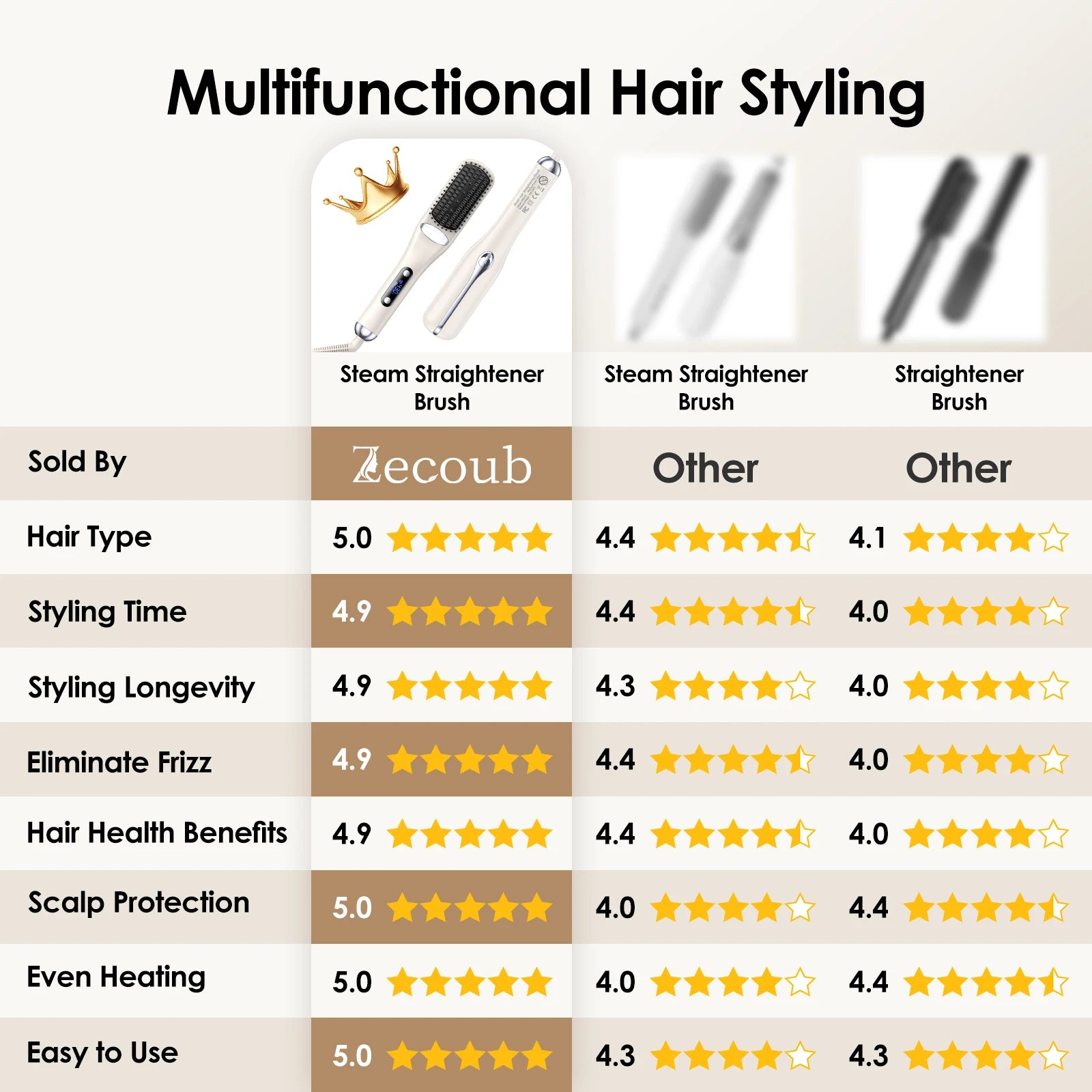 Steam Straightener Comb 3s Heat Ionic Multifunctional Ionic Styler for Curly/Frizzy Hair 13 Temp Modes 130-210°C Home Salon